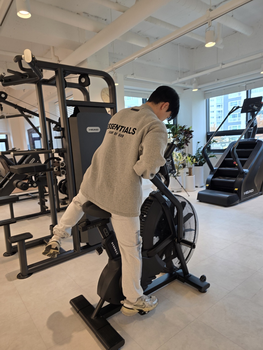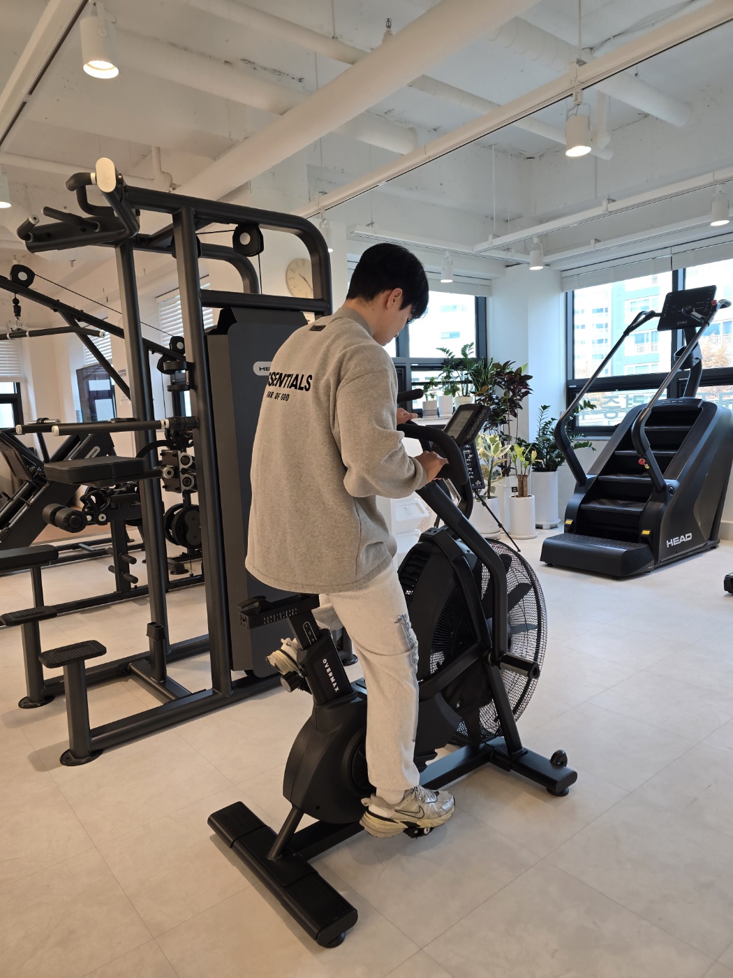 일명 '악마의 자전거'. 페달을 밟으면서 핸들을 밀고 당겨야 하는 이 기구는 정말 1분만 타도 허벅지가 터질 것 같습니다. 오버맥스의 에코 바이크는 묵직한 프레임 덕분에 전력 질주를 해도 흔들림이 없었습니다. 나이키 트레이닝이 추구하는 '극한의 퍼포먼스'를 끌어내기에 최적의 파트너였습니다.